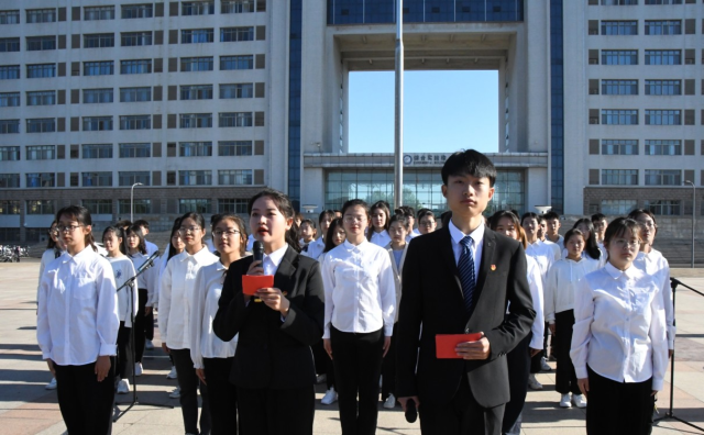 清晨七点整,升旗仪式正式开始。国旗护卫队迈着整齐有力的步伐,护送鲜艳的五星红旗入场。“升国旗,奏唱国歌,全体师生行注目礼!”伴随国歌奏响,全体师生以饱满的爱国热情注视着五星红旗冉冉升起,表达崇高敬意。追忆光辉历史,体味艰苦过往,学生代表袁千然进行演讲,她强调新时代青年要肩负历史使命,坚定前进信心,立大志,明大德,成大才,担大任,努力成为堪当民族复兴重任的时代新人。百年回眸,岁月悠悠,主持部成员朗诵诗歌《党史礼赞》,他们以真挚的情感讲述华夏故事,用铿锵有力的声音讲述党的记忆,表达了对党的无限崇敬。新时代,新未来,合唱部与手语部成员共同演绎歌曲《共筑中国梦》,歌声嘹亮,唱出了新时代的中国梦,激励同学们昂首启程,实现梦想。
