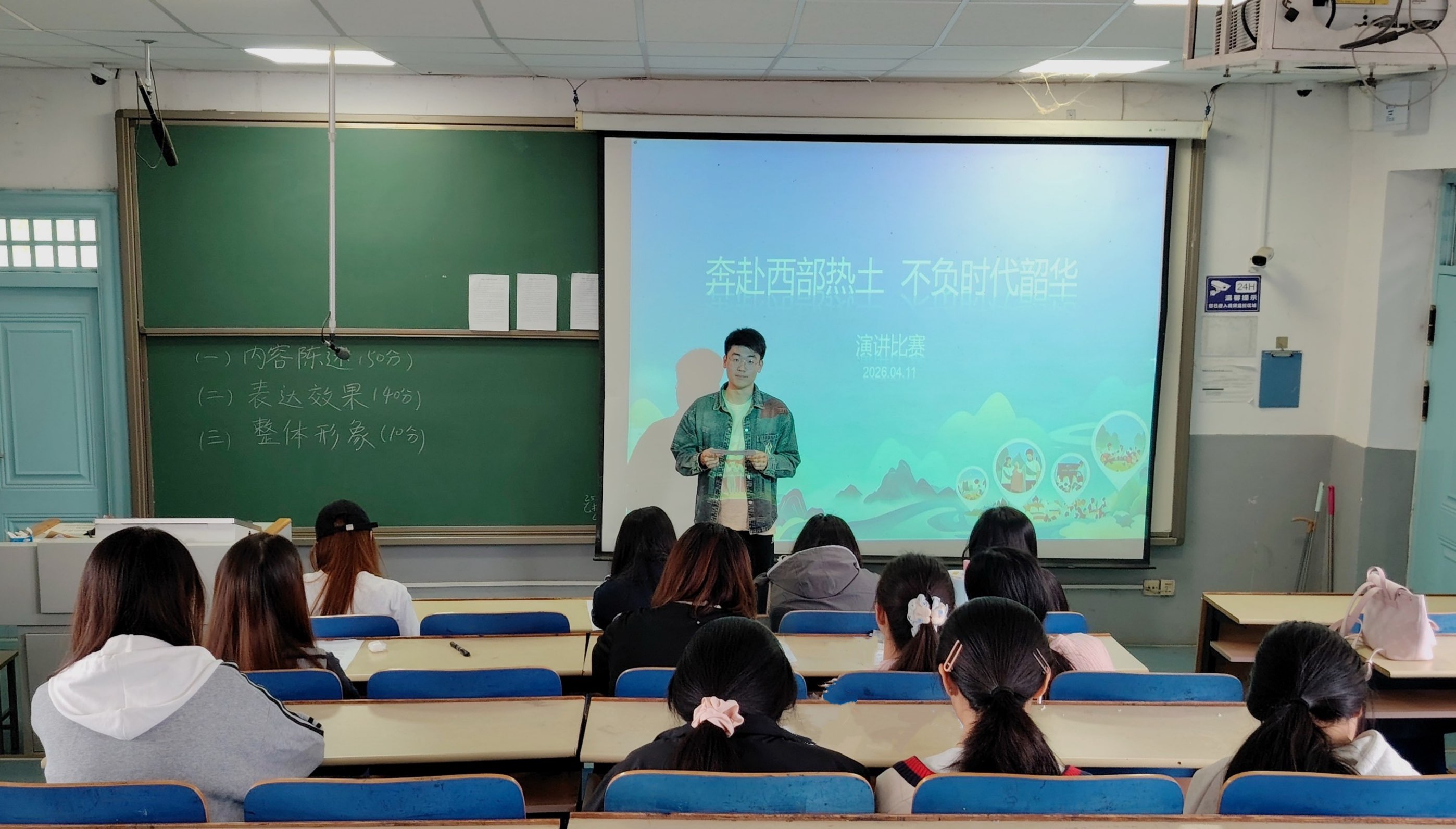 为引导同学们深入了解西部计划,厚植家国情怀,丰富校园文化生活,搭建青年展示自我、交流思想的平台, 4月11日,成人小说在4#A124教室举办“奔赴西部热土 不负时代韶华”主题演讲比赛。